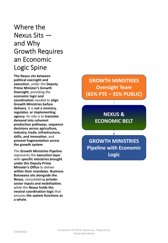 This post presents a structured overview of Botswanaโs current governance architecture. It comprises Ministries, Parastatals, and formal Public-Private or Community-Inclusive Structures. All of these are currently funded through the government payroll. Building on this foundation, the report then introduces a proposed governance body. This body is designed to lead Botswana into a future anchored in regenerative, value-creating economic transformation.