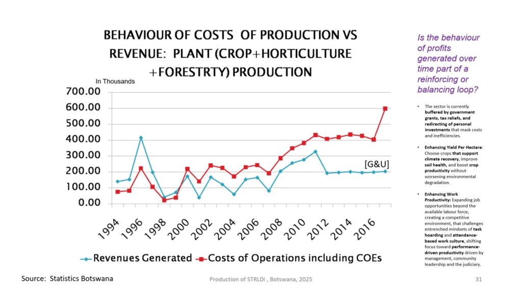 The study’s behaviour-over-time graphs show that even with investment, manufacturing and agriculture have failed to generate sustained profitability as national sectors.