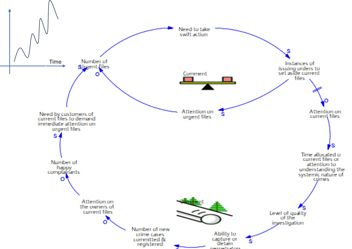 Urgent files ↑ → swift action ↑ → attention on current files ↓ → quality of work ↓ → complainant dissatisfaction ↑ → urgent files ↑