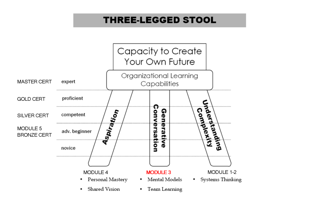 | 1 | Why the Five Disciplines? Why not others? | – What would happen for the organisation if the five disciplines were to come together in practice? – What happens when they do not? Introduction to the framework, tools, and essence of the Five Disciplines: – The Three-Legged Stool – The 60 Tools of Learning Organisations – The Structural Tension Model Group Work: Seeing Our World Together Introducing the Discipline of Mental Models Definition |