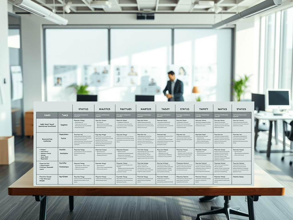 All systems aligned. Columns: Task → Current Status → Next Steps + Global Timeline Standard
