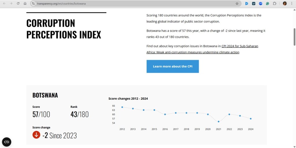 Botswana has long been recognized for its relatively low levels of corruption. This is in comparison to regional peers. The low levels are attributed to strong legal frameworks and a tradition of bureaucratic meritocracy. Yet, recent concerns have emerged about procurement-related corruption, particularly under emergency powers during COVID-19. This highlights the breakdown of the balancing loop when oversight mechanisms are bypassed.